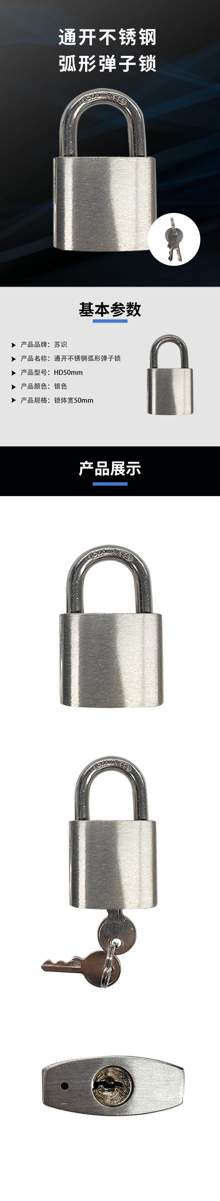 苏识 HD50mm 不锈钢弧形弹子锁 通开 (单位:个) 银色