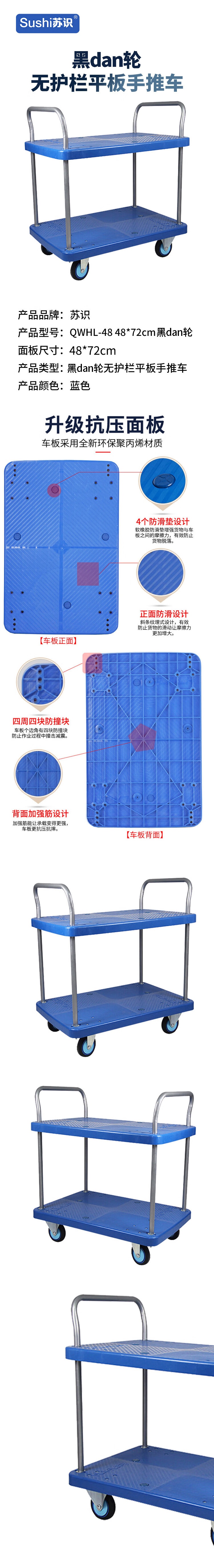 苏识 QWHL-48 无护栏平板手推车 48*72cm黑弹轮 (单位:辆) 蓝色