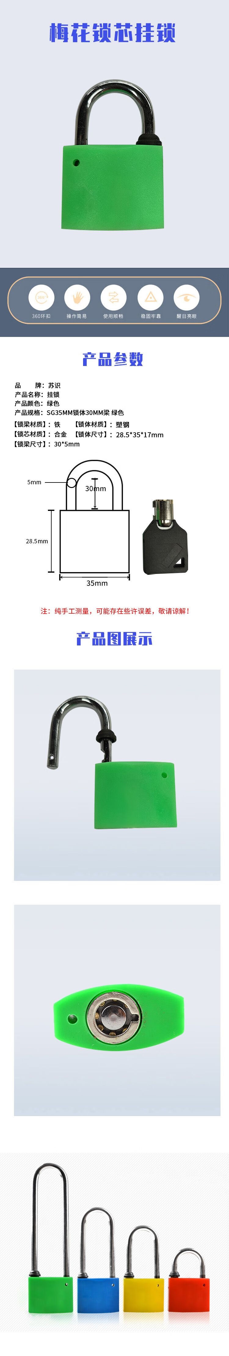 苏识 SG35mm 梅花锁芯挂锁 35mm锁体30mm粱 (单位:个) 绿色