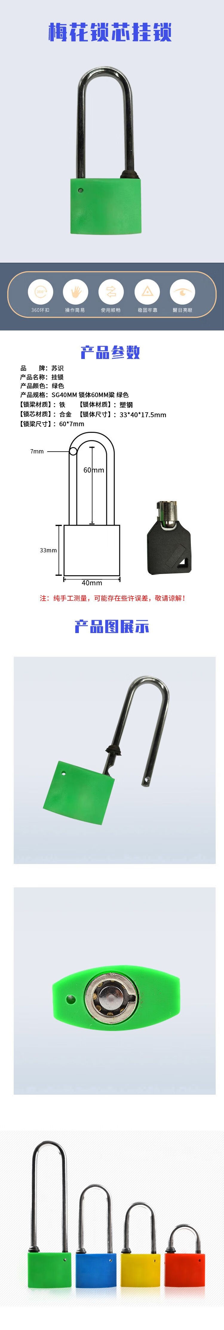 苏识 SG40mm 梅花锁芯挂锁 40mm锁体60mm梁 (单位:个) 绿色