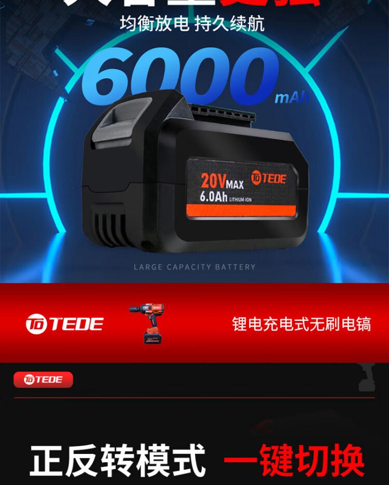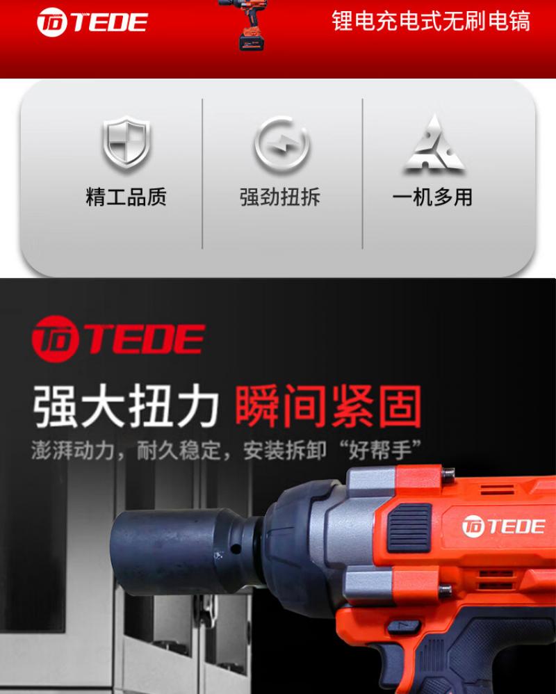 TEDE 3/4寸锂电充电式无刷电镐 一电一充