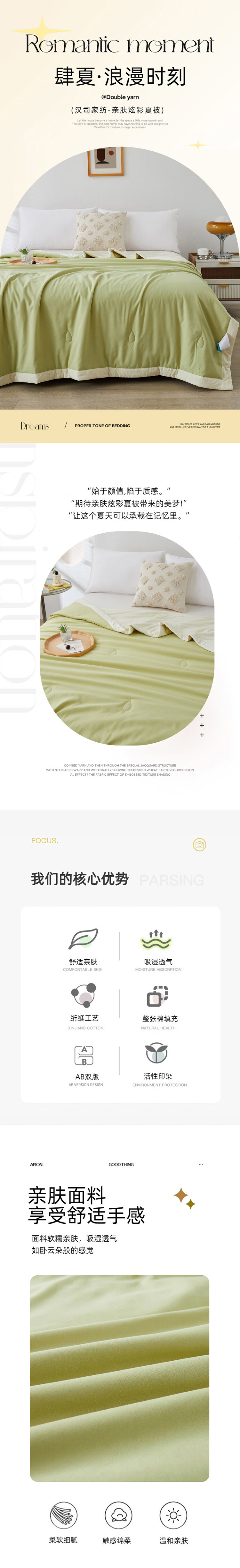 汉司家纺 亲肤炫彩 夏被 200*230cm (单位:床) 夏日荷绿浅香蕉色