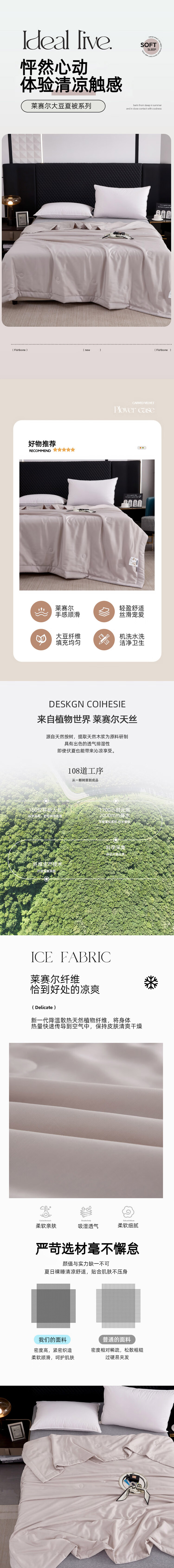 汉司家纺 天丝柔软 丝滑水洗夏被 150*200cm (单位:条) 米灰