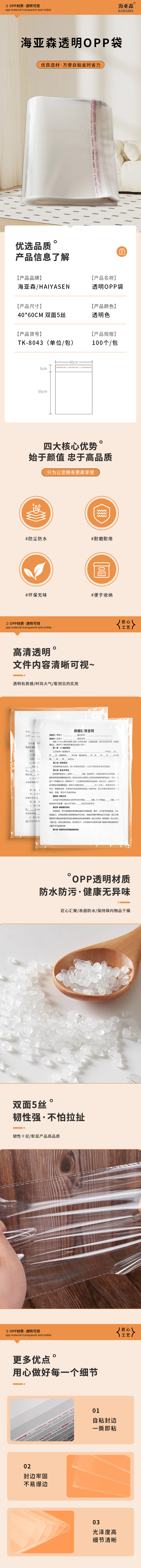 海亚森(HAIYASEN) TK-8043 opp文件袋 40*60cm 100个/包 (单位:包) 透明色