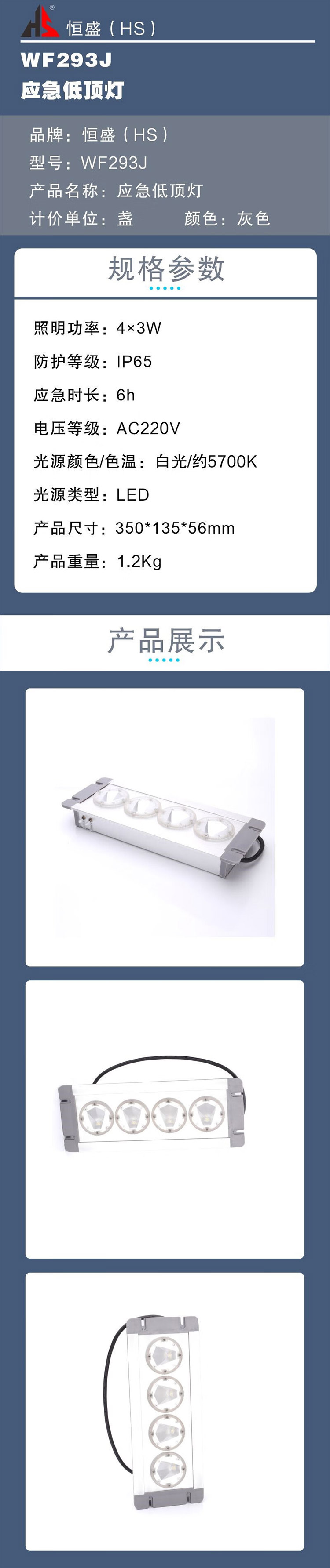 恒盛(HS) WF293J 应急低顶灯 4*3W (单位:盏)