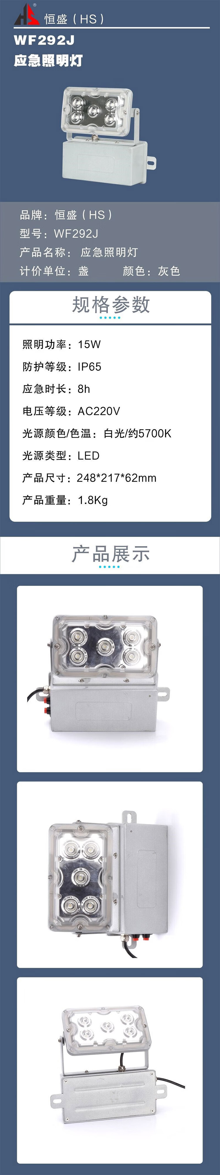 恒盛(HS) WF292J 应急照明灯 15W (单位:盏)