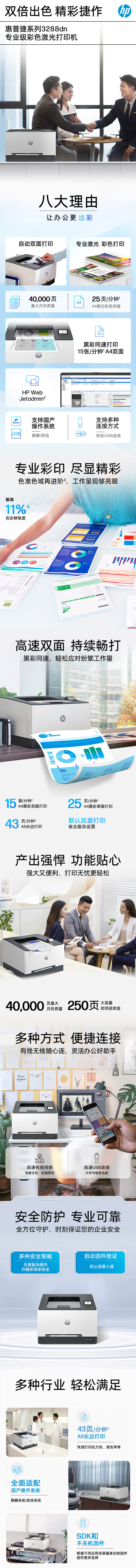 惠普(HP) Color LaserJet Pro 3288dn 彩色激光打印机 A4 (单位:台)