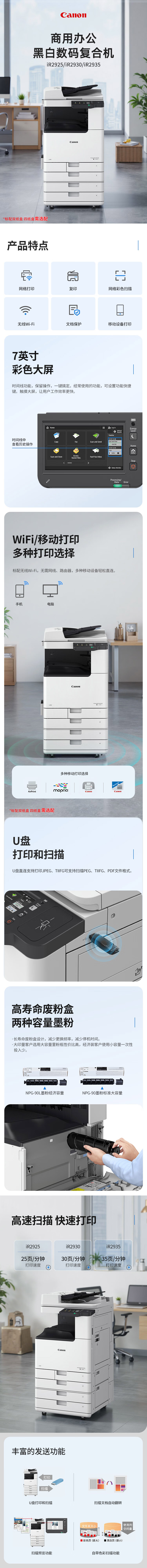 佳能(Canon) iR2930 黑白激光数码多功能一体机 双面自动输稿器+双纸盒+原装工作台 (单位:台)
