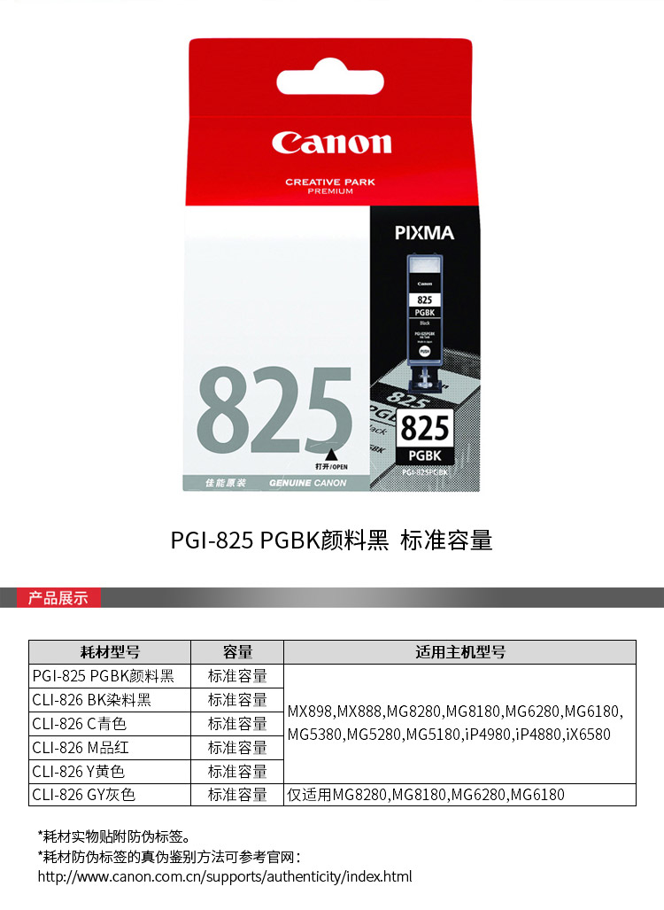 佳能(Canon) PGI-825PGBK 墨盒 311页 (单位:盒) 黑色