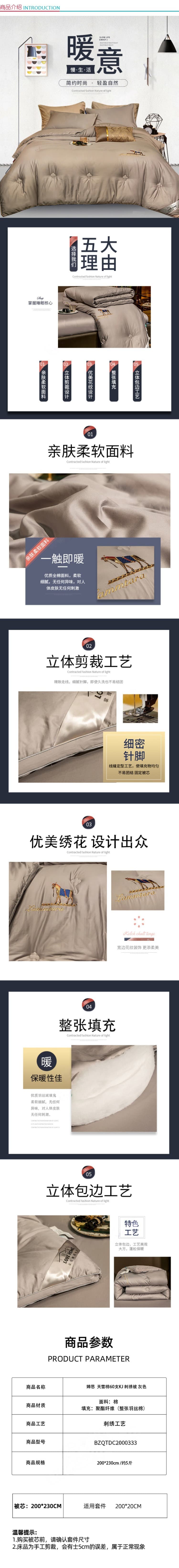 婵思 BZQTDC2000333 天雪棉60支KJ刺绣被 200*230cm/5斤 (单位:条) 灰色