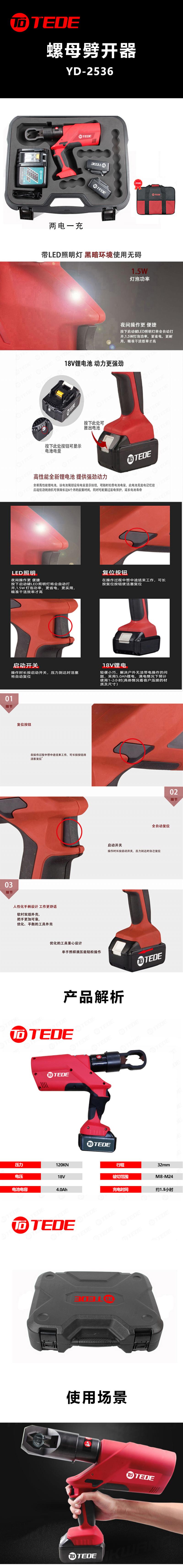 TEDE YD-2536 TEDE YD-2536 螺母劈开器 两电一充 (单位:套) 两电一充 (单位:套)