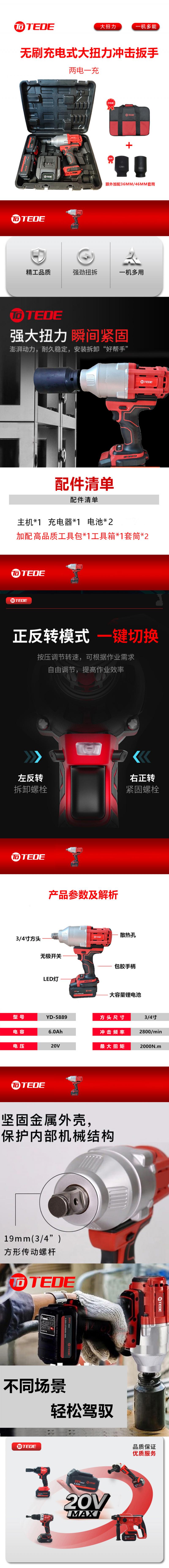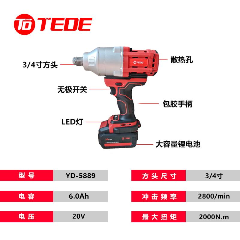 TEDE YD-5889 TEDE YD-5889 无刷充电式大扭力冲击扳手 两电一充 (单位:套) 两电一充 (单位:套)