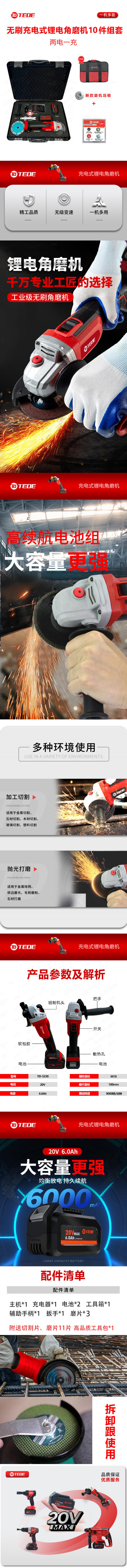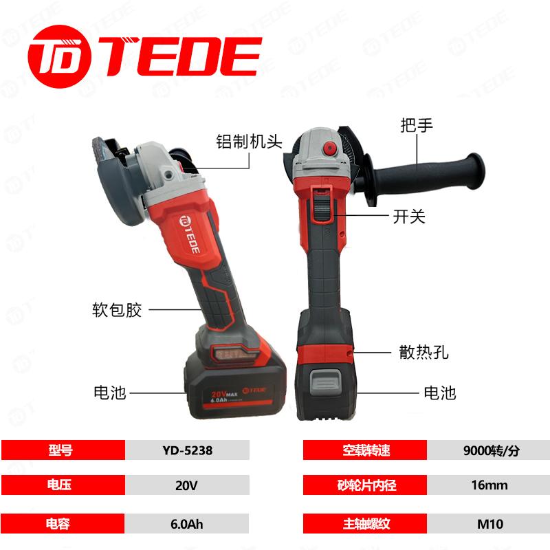 TEDE YD-5238 TEDE YD-5238 无刷充电式锂电角磨机10件组套 两电一充 (单位:套) 两电一充 (单位:套)