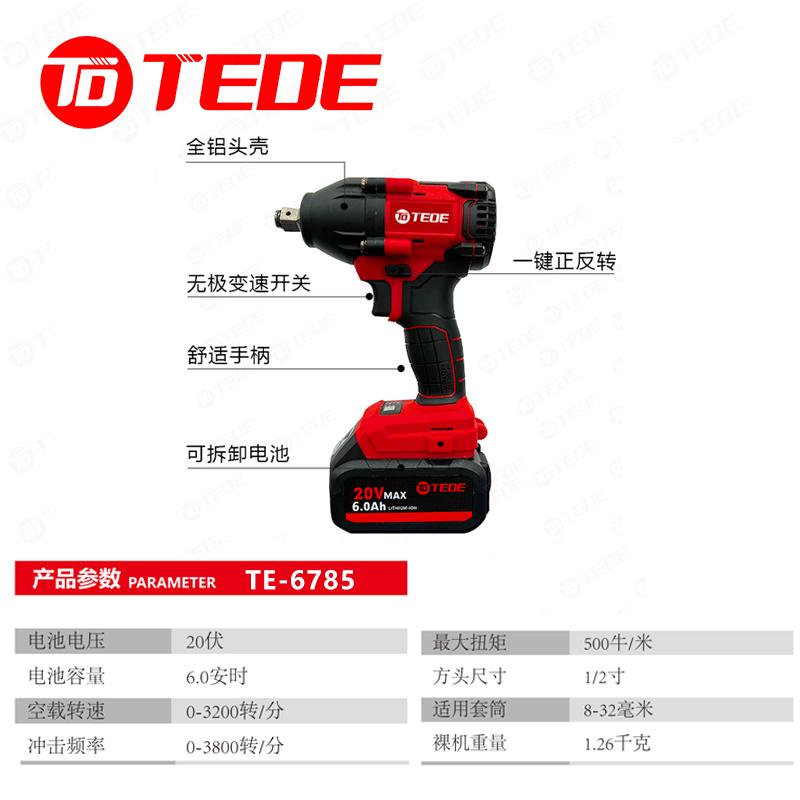TEDE TE-6785 TEDE TE-6785 无刷充电式锂电扳手 两电一充 (单位:套) 两电一充 (单位:套)