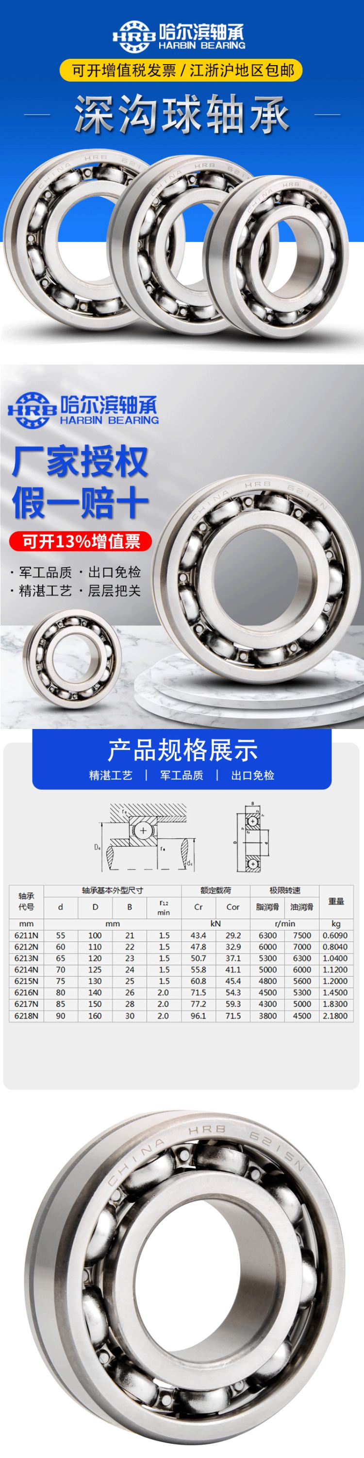 哈轴(HRB) 6211N 轴承 (单位:个)