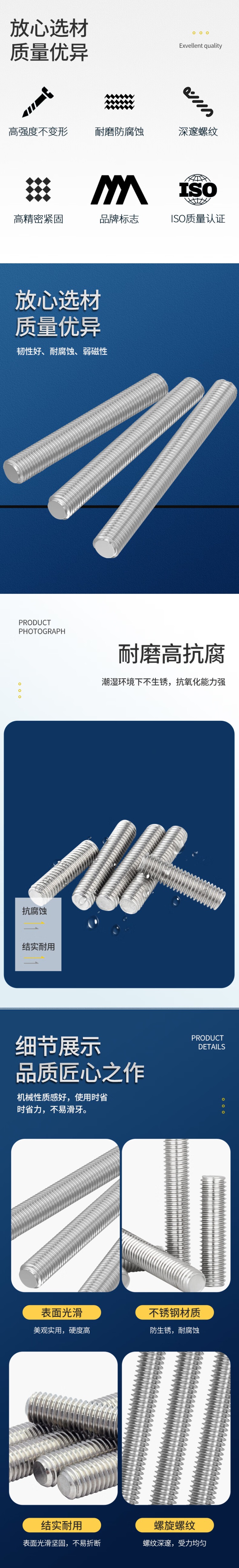 奥展 S30408 全螺纹螺柱 A2-70 M20*120 (单位:根) 100根起订