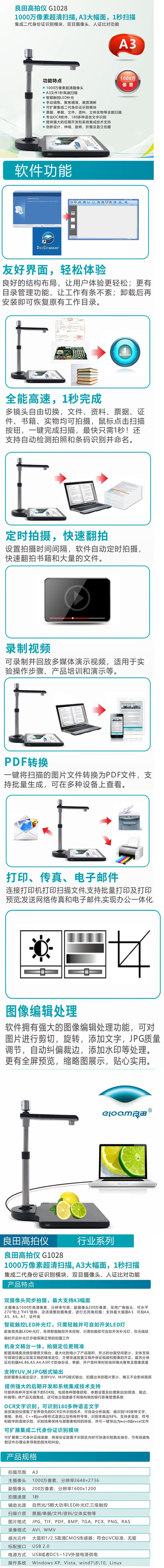 良田(eloam) G1028 高拍仪 1000万 A3幅面 (单位:台) 黑色