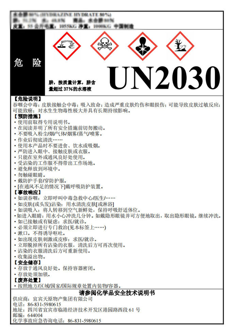 国产 激光不干胶 水合肼35%标签 亮光纸 中文 210mm*148.5mm (单位:张) 100张起订