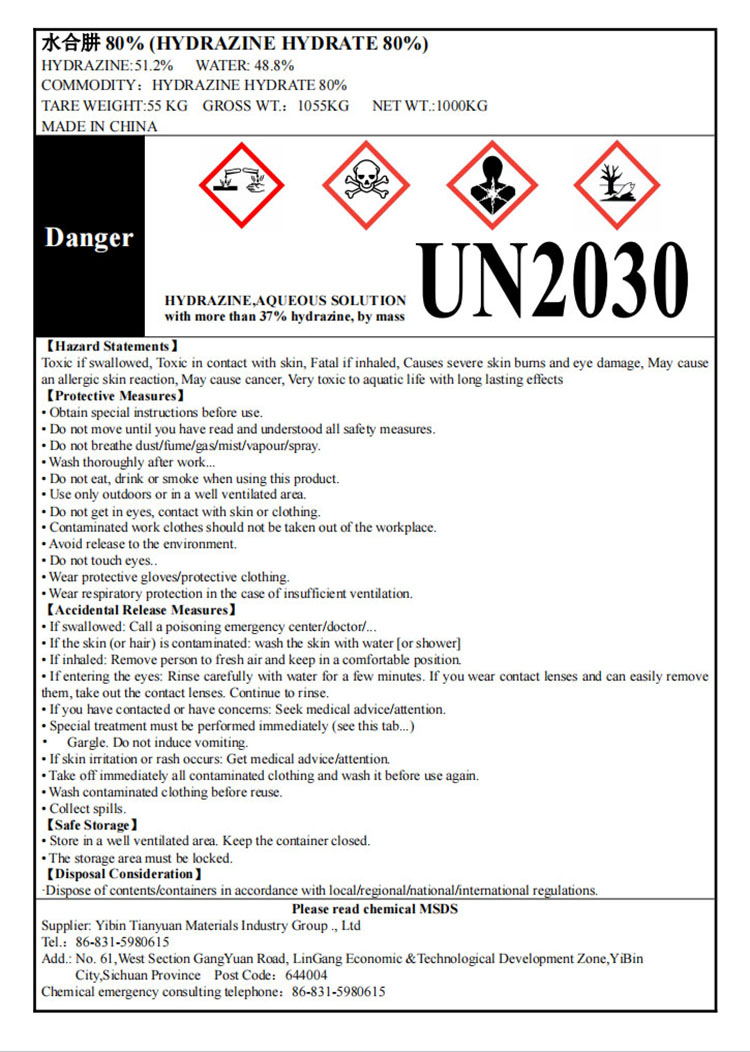 国产 激光不干胶 水合肼80%标签 亮光纸 英文 210mm*148.5mm (单位:张) 100张起订
