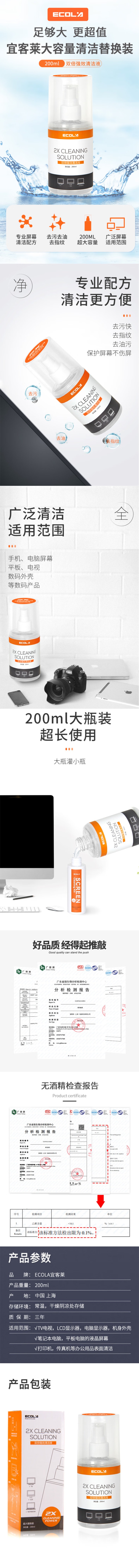 宜客莱(ECOLA) CD-EL200-CP 超大容量双倍效能清洁液 200ml (单位:瓶)