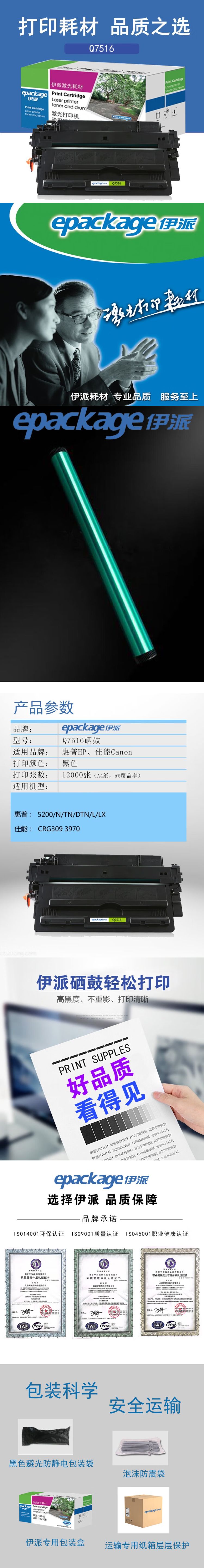 伊派 Q7516 硒鼓 专业版 12000页 (单位:支) 适用于5200TN 5200DTN 5200LX 5200N 黑色