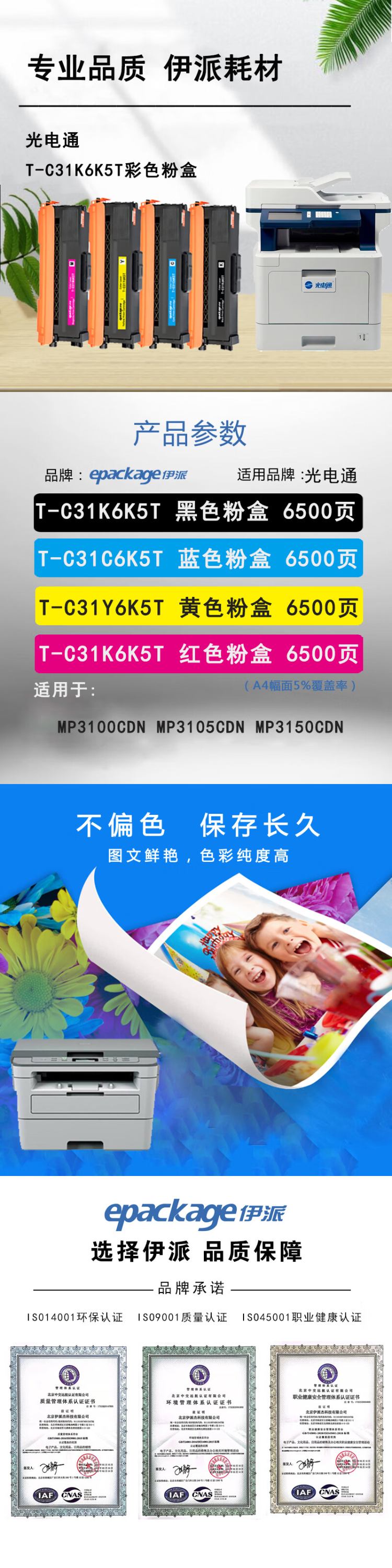 伊派 T-C31C6K5T 粉盒 6500页 (单位:支) 适用于MP3100CDN MP3105CDN 蓝色