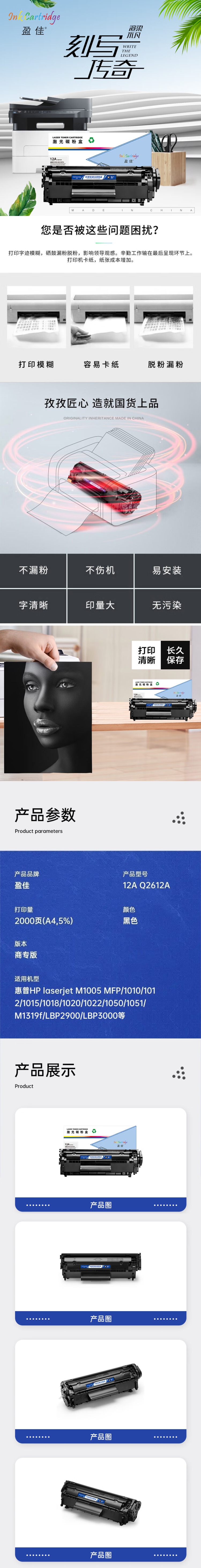 盈佳(Ink Cartridge) 12A Q2612A 硒鼓 商专版 2000页 (单位:支) 适用于惠普HP laserjet M1005 MFP 1010 1012 1015 1018 1020 1022 黑色