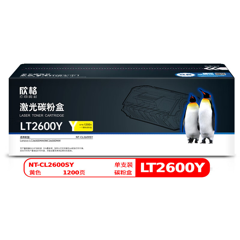 欣格 NT-CL2600SY 碳粉盒 1200页 (单位:支) 适用Lenovo LC2600DNW/MC2600DNW 黄色