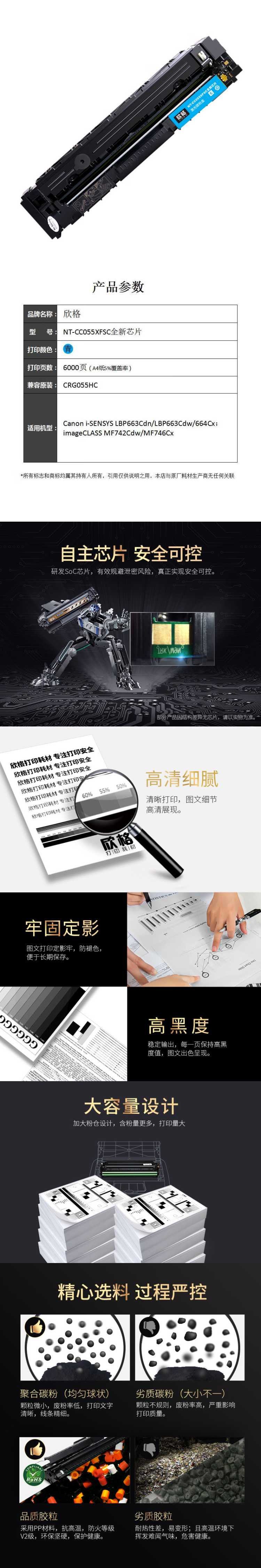 欣格 NT-CC055XFSC全新芯片 碳粉盒 6000页 (单位:支) 适用Canon i-SENSYS LBP663Cdn/LBP663Cdw/664Cx 青色