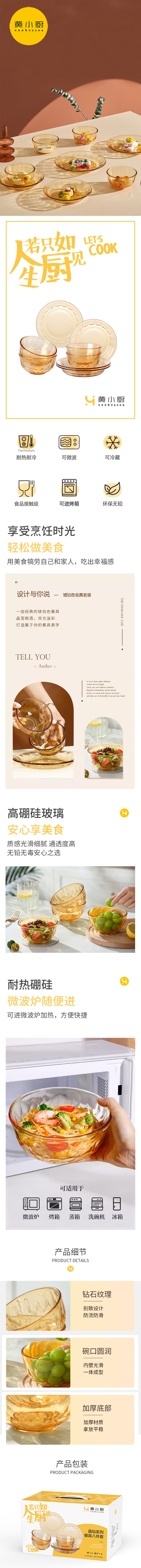 黄小厨 HXC-B-TZ029 晶钻系列餐具套装 八件套 (单位:套)