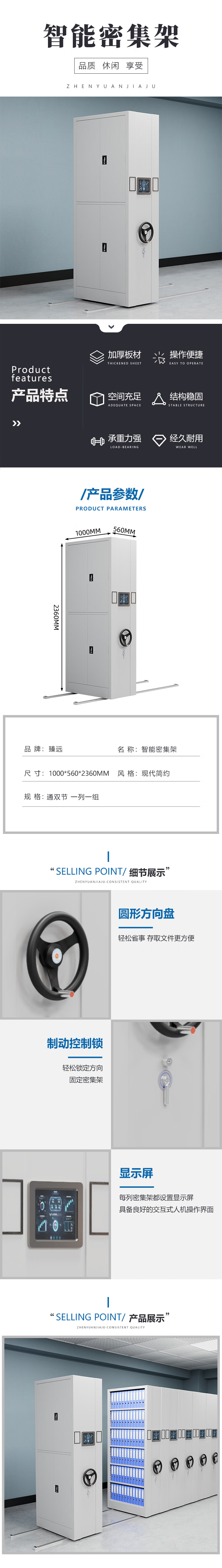 臻远 ZY-SY-57 智能密集架 一列一组 100*56*236cm (单位:组) 灰白色