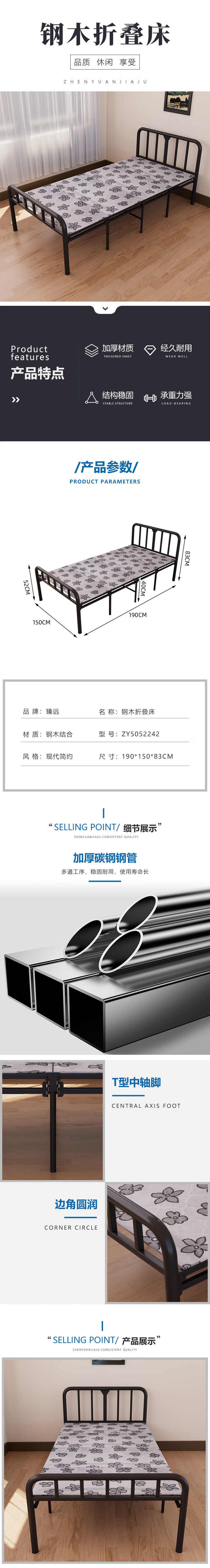 臻远 ZY5052242 钢木床简易折叠床 四折 190*150*83cm (单位:张) 银彩