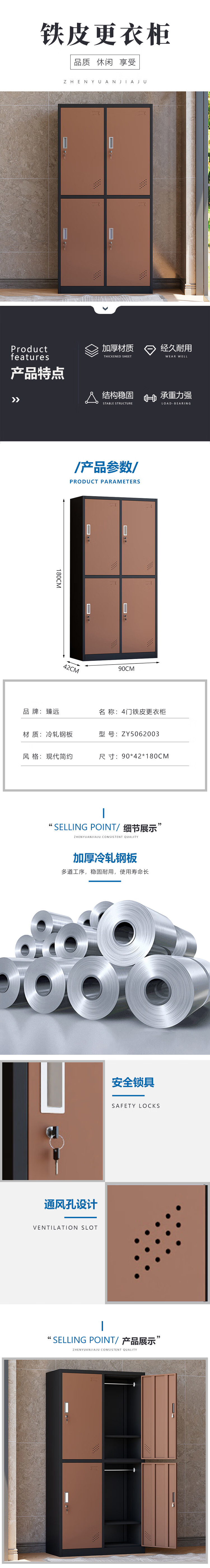 臻远 ZY5062003 铁皮更衣柜 四门 90*42*180cm (单位:台) 黑框咖门