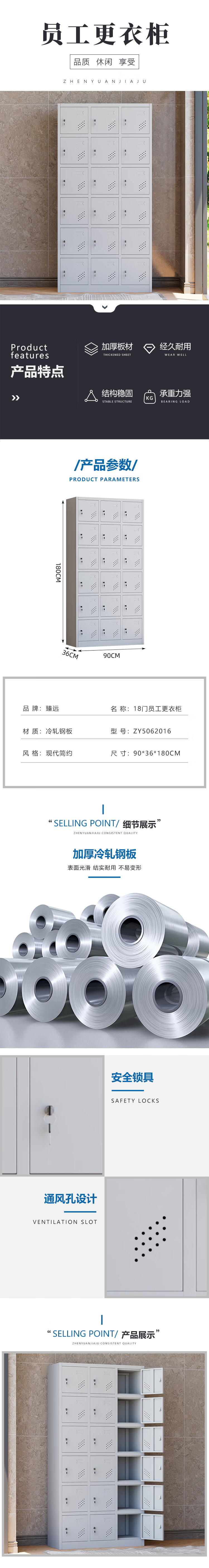 臻远 ZY5062016 铁皮更衣柜 18门 90*36*180cm (单位:台) 纯白色