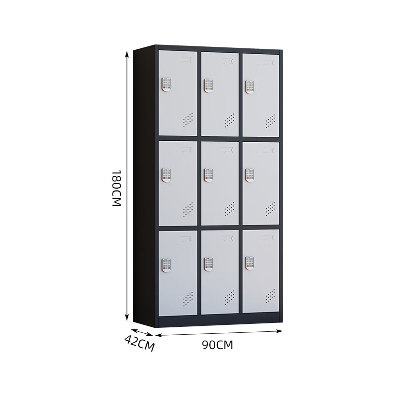 臻远 ZY5062041 铁皮更衣柜密码锁 九门 90*42*180cm (单位:台) 黑框白门