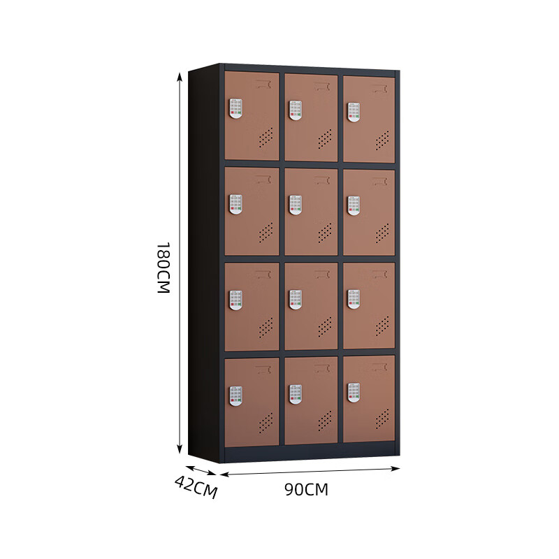臻远 ZY5062044 铁皮更衣柜密码锁 12门 90*42*180cm (单位:台) 黑框咖门