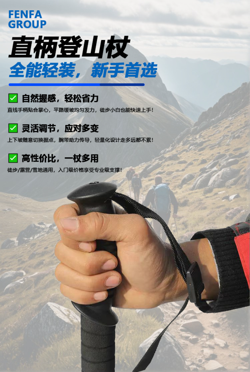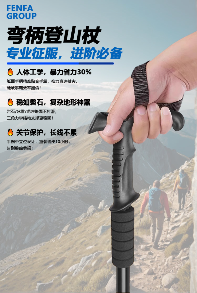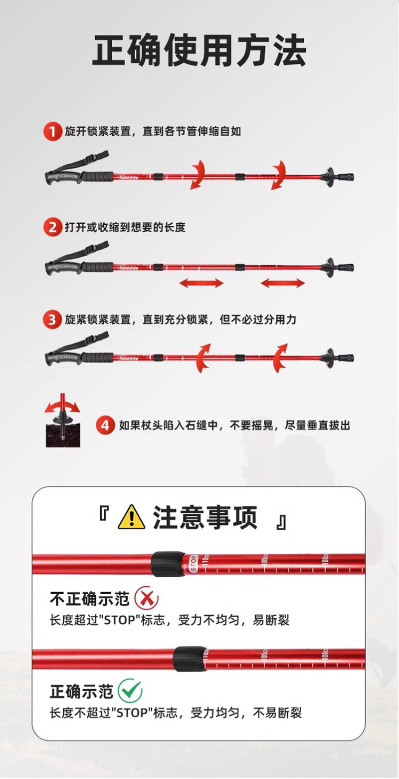 户外旅游登山杖可伸缩铝合金手杖 银色-弯柄登山杖四节50cm-107cm5个装