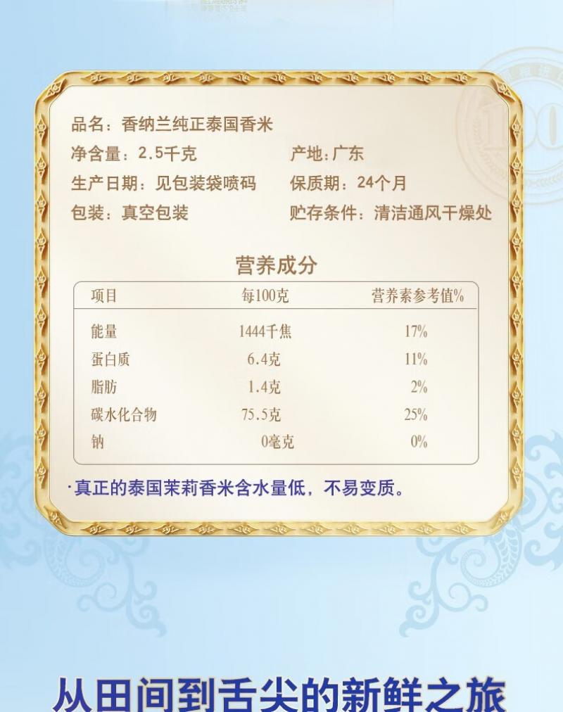 香纳兰 6948195862376 香纳兰泰国纯正香米2.5kg (单位:袋)