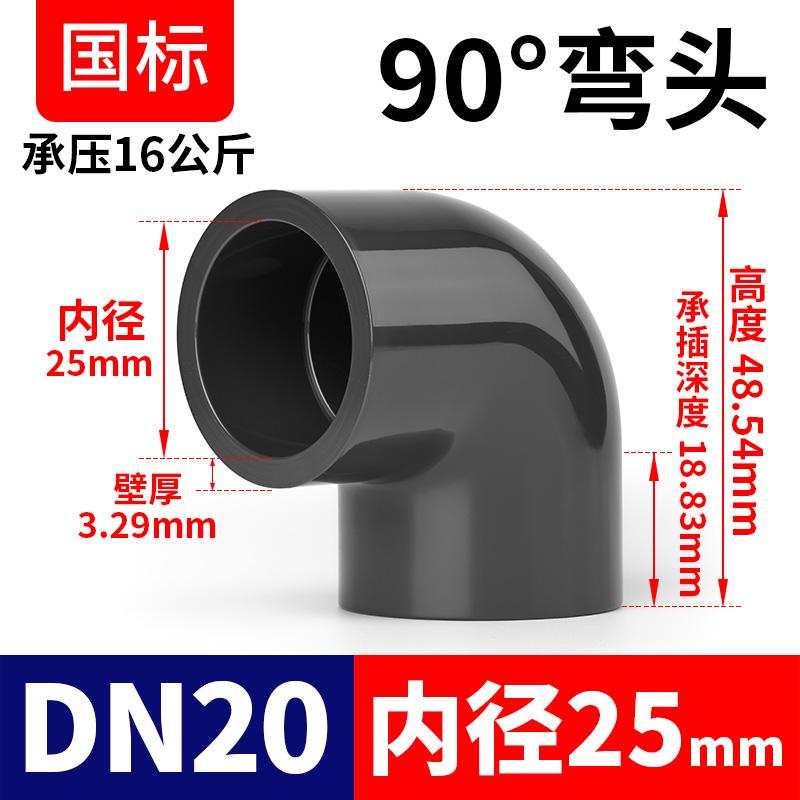 ABK DN20(内径25mm) UPVC-深灰-90°弯头 (单位:个) 深灰色
