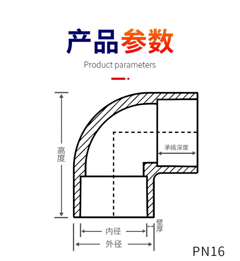 ABK DN40(内径50mm) UPVC-深灰-90°弯头 (单位:个) 深灰色