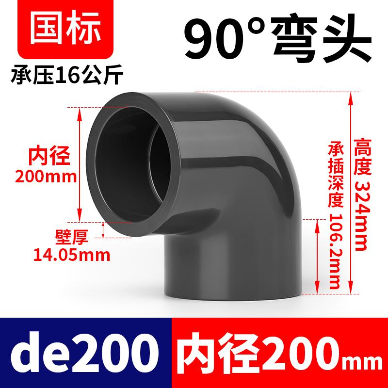 ABK 200mm-PN16 UPVC-深灰-90°弯头 (单位:个) 深灰色