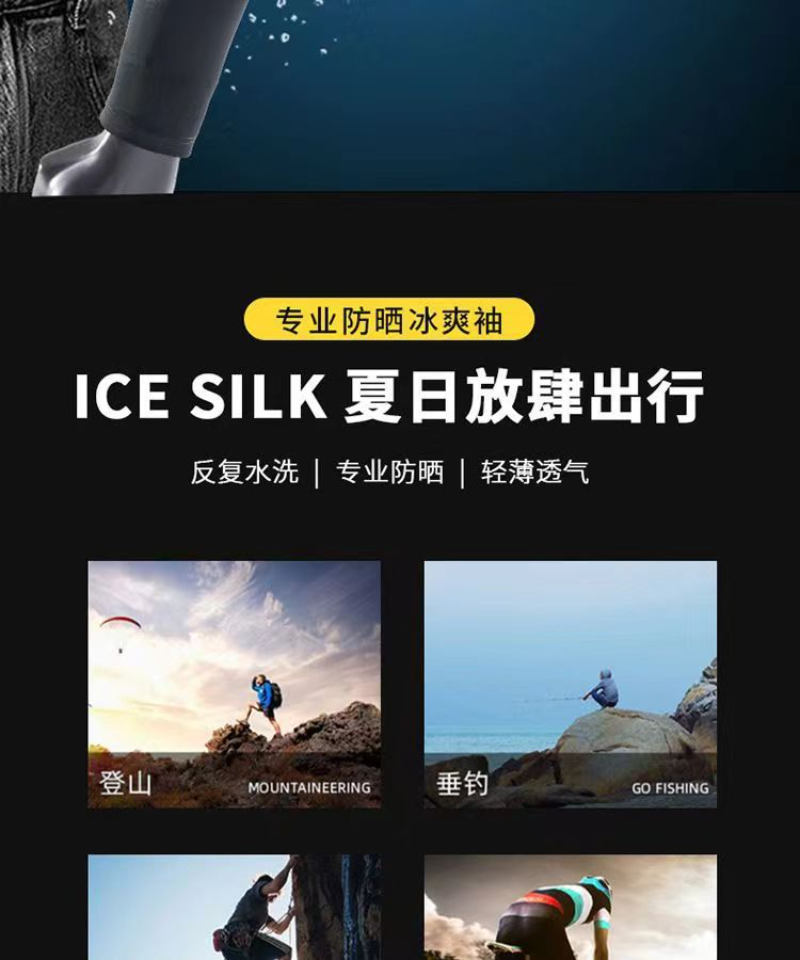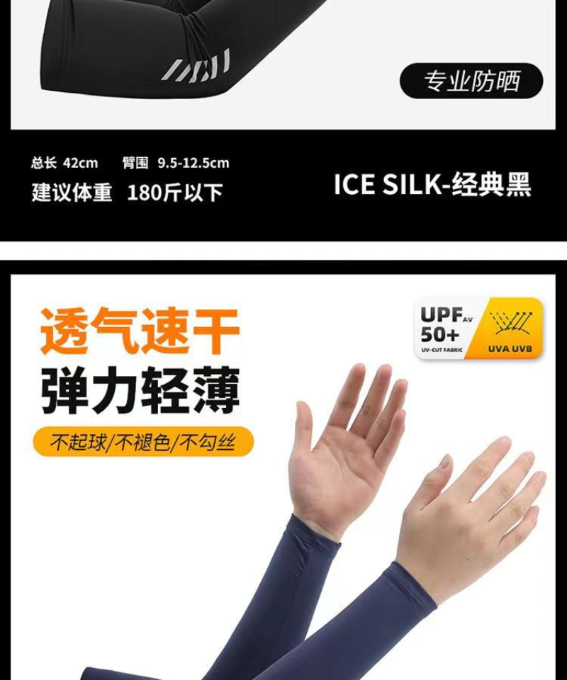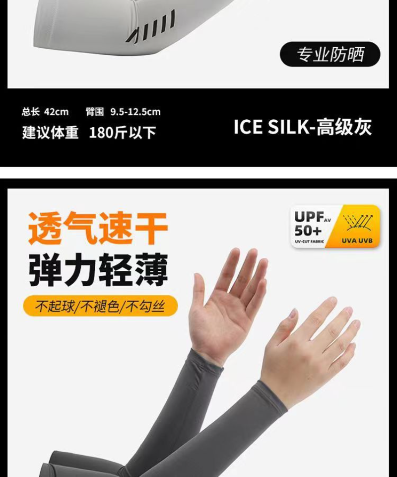 冰丝袖套夏季防晒防紫外线男士 经典六杠冰袖 深灰色L(建议110-150斤)*五件装