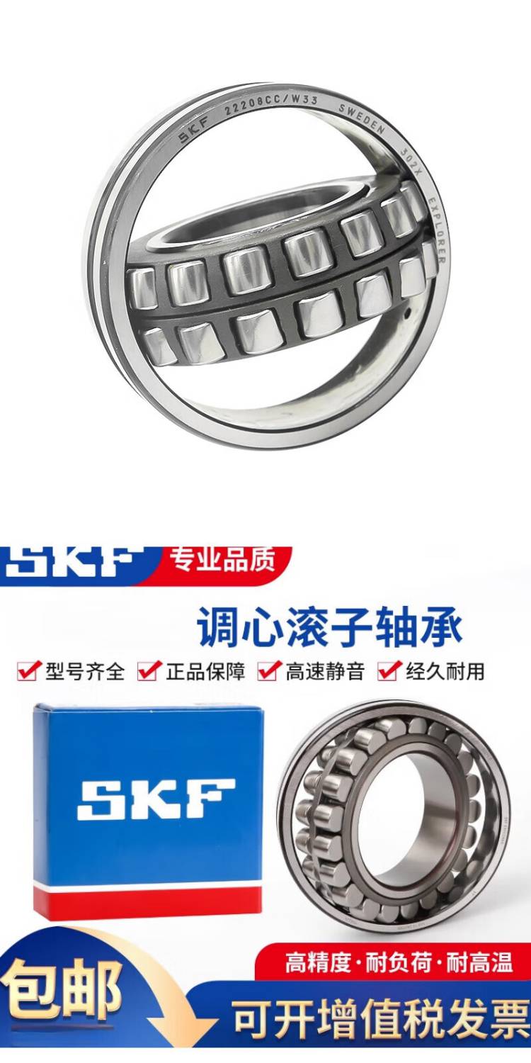 斯凯孚(SKF) 22210CA/W33 调心滚子轴承 (单位:套) 10套起订