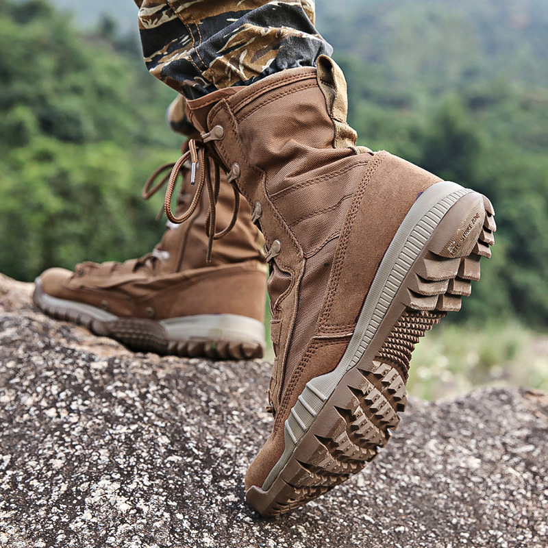 大码沙漠靴高帮作战靴男士 沙色拉链42码