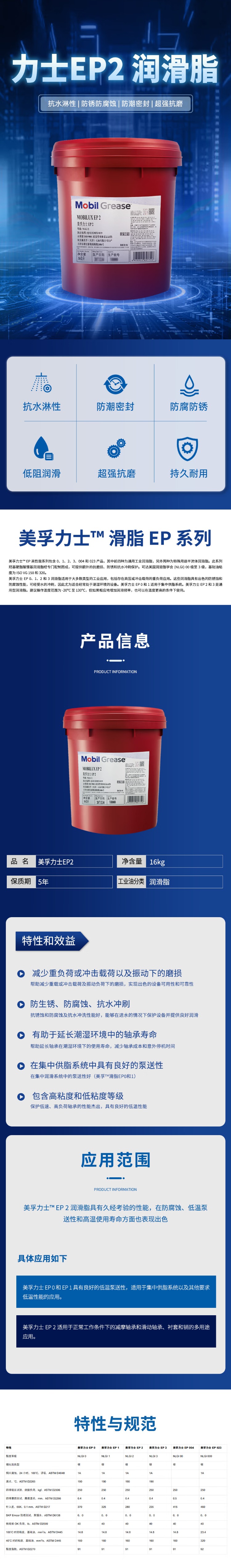 美孚(Mobil) 力士EP2 工业润滑脂 16kg/桶 (单位:千克)