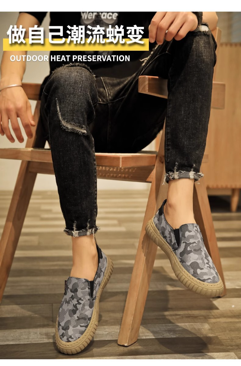 迷彩帆布鞋夏季透气一脚蹬男士 黑色41码两双装