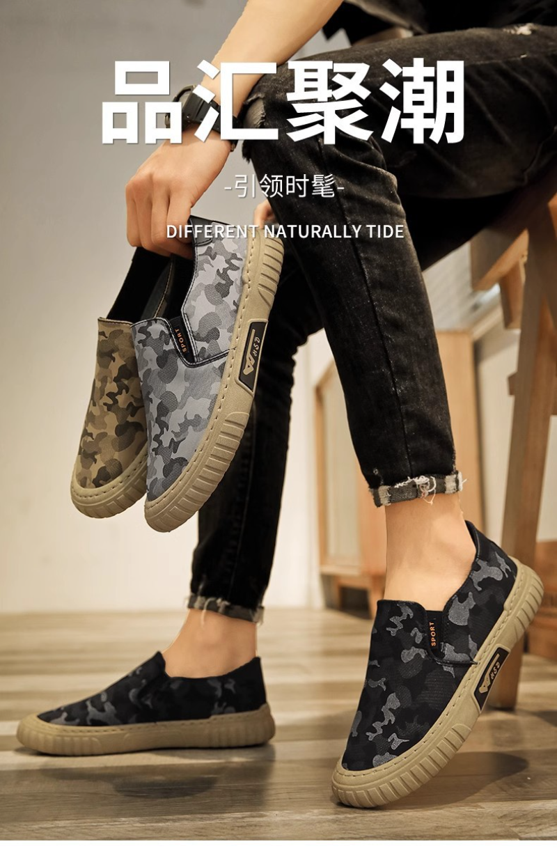 程佑(CHENGYOU) CY-XZ 迷彩帆布鞋夏季透气一脚蹬男士 黑色42码两双装 (单位:双)