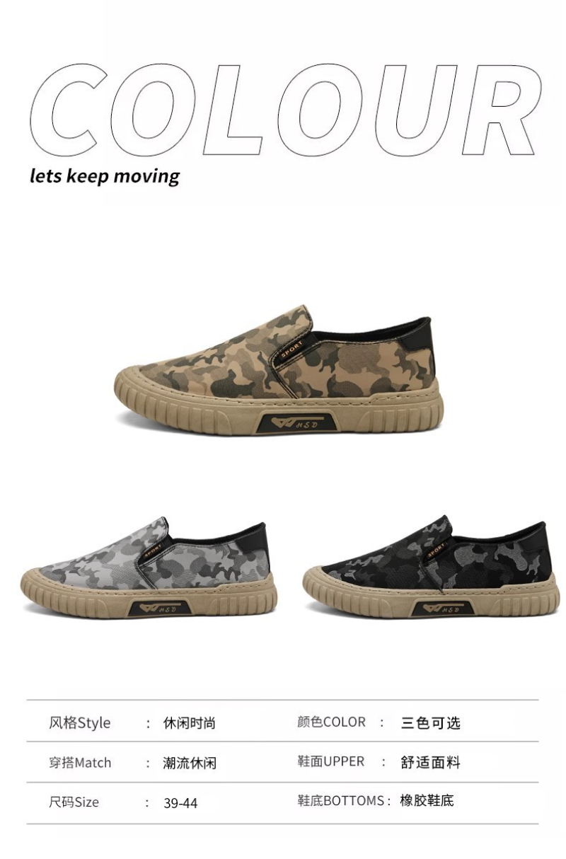 迷彩帆布鞋夏季透气一脚蹬男士 黑色44码两双装