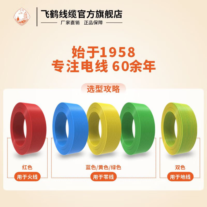 飞鹤 ZC-60227 电源线 IEC 01(BV) 2.5平方毫米 100米/卷 (单位:卷) 红色