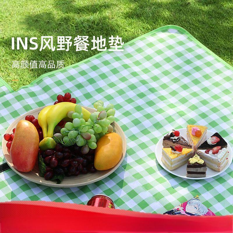 户外野餐垫防潮垫加厚防水垫 绿格无纺布100150cm五件装